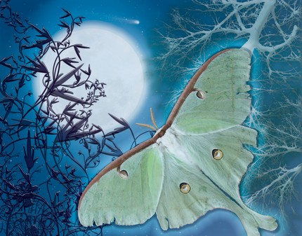 Moth Moon, a-flutter in the lilac tree,